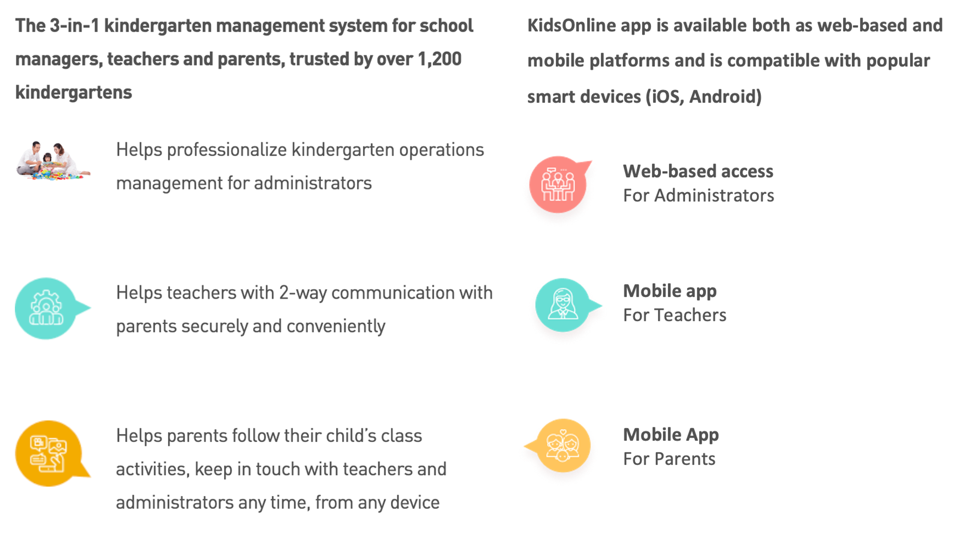 ✔The 3-in-1 kindergarten management system for school managers, teachers and parents